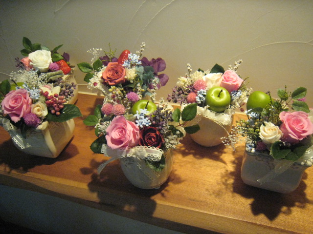 私の作っていったお花も、少し華やかなものを意識して作っていったのに、