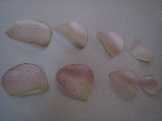 一輪の花から花びらをちぎって、もう一輪にグルーガンでつけて