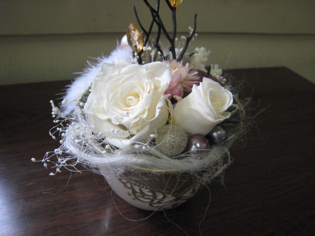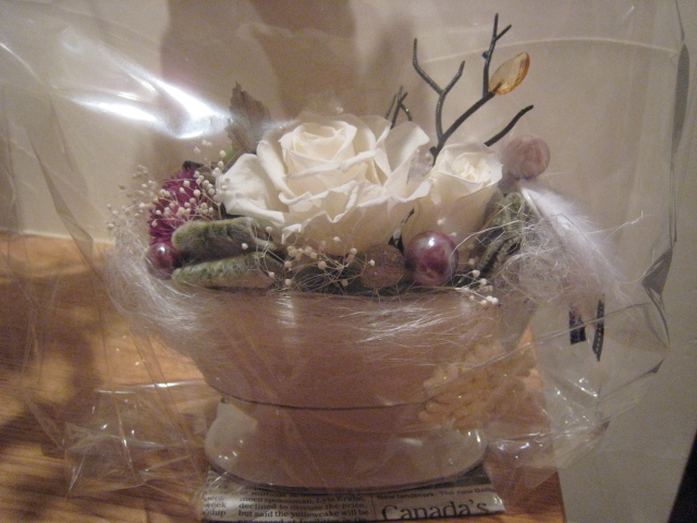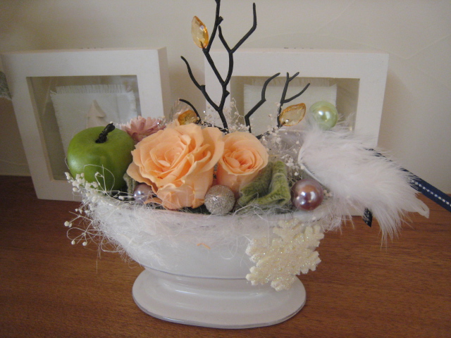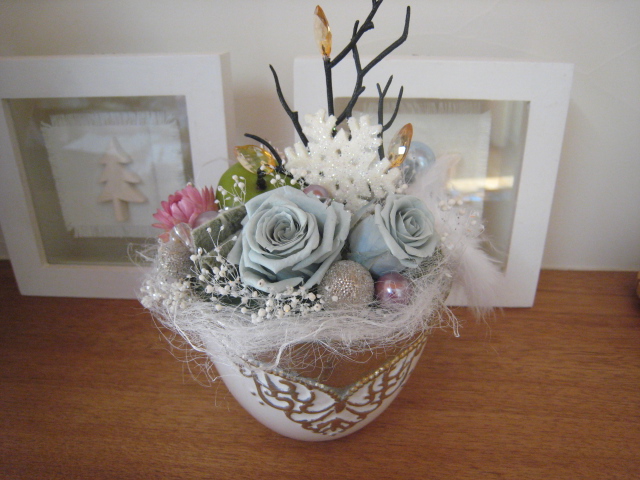 今回ブリザードフラワーを使ったアレンジ