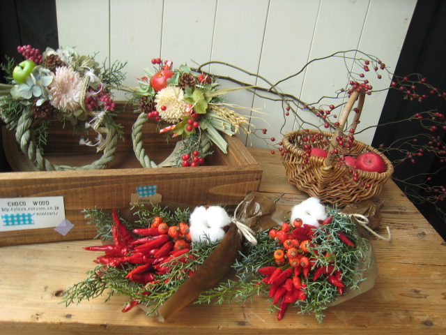 リボンも豊富に持っていき、違う種類の花や、リース台を持って行ったら