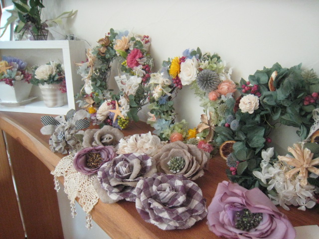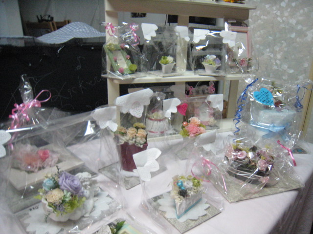 今回私はプリザのアレンジや布花、アクセサリーなどなどたくさんKomagoma持っていきます。