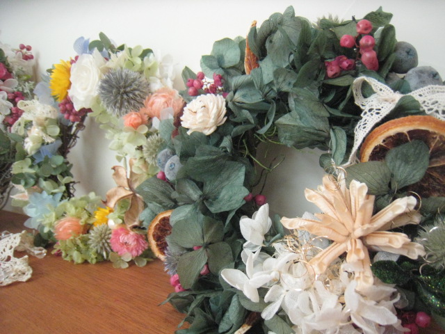 真中が25センチリース、両サイドは20センチリースです。(プリザ)