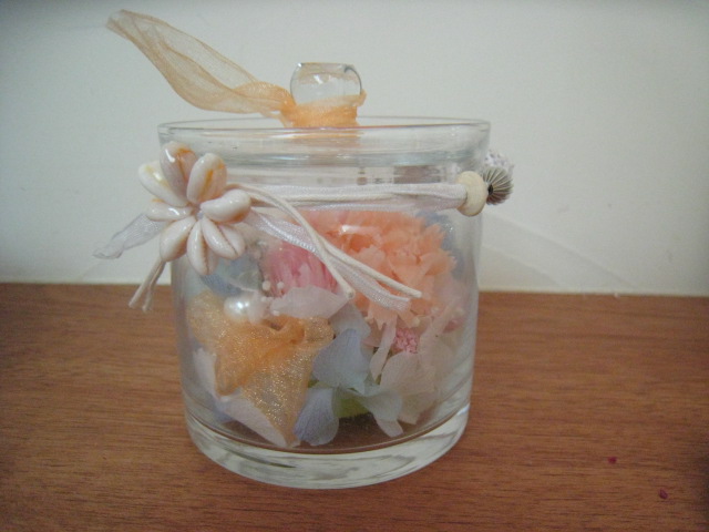 小さな小瓶に宝石箱のようにお花を詰め込みました