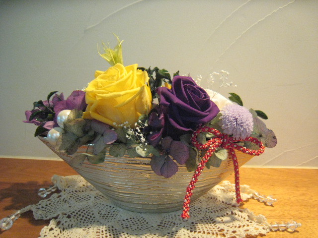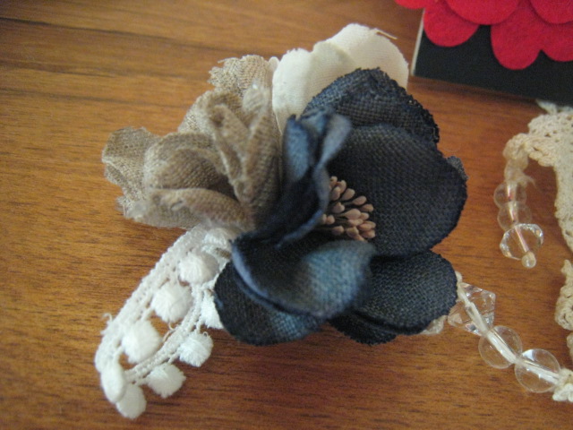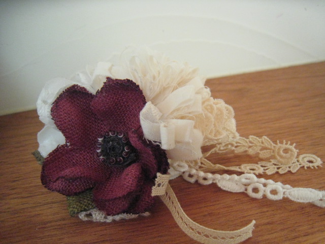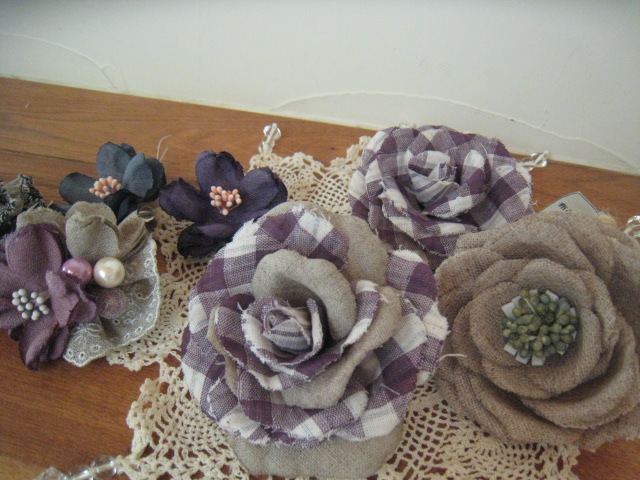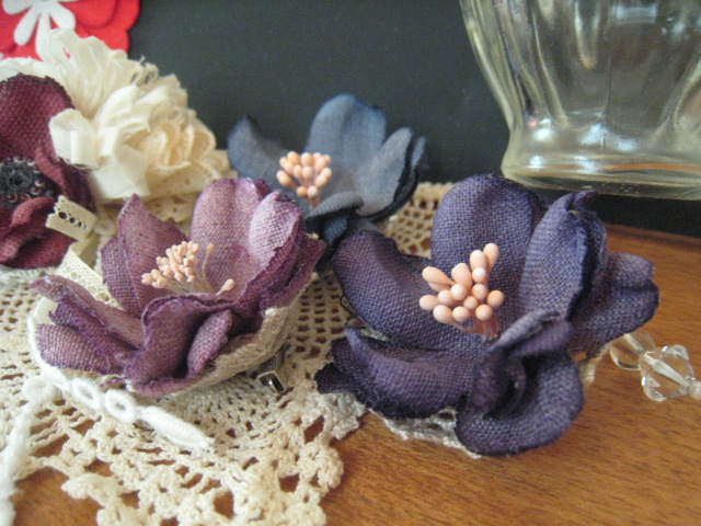 私は今回リネンを春色に染めて、布花を何点か作りました。