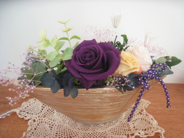 でアレンジしました全てプリザーブドフラワーです。(パールは本物じゃないですよ)