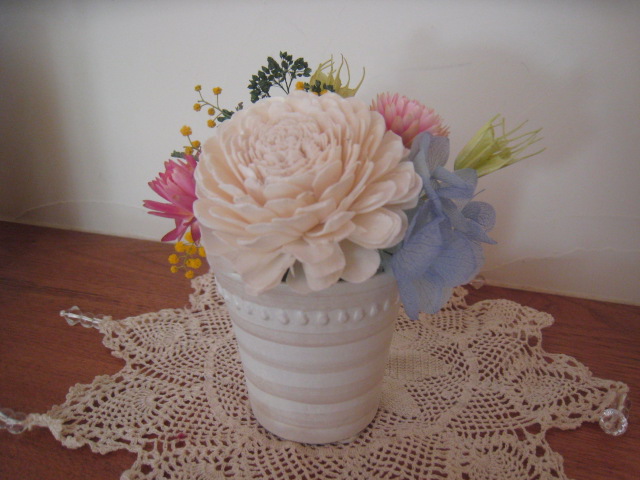 今回はわざとバラの花びらをまーるく~ぽっこりとした花に仕上げました。