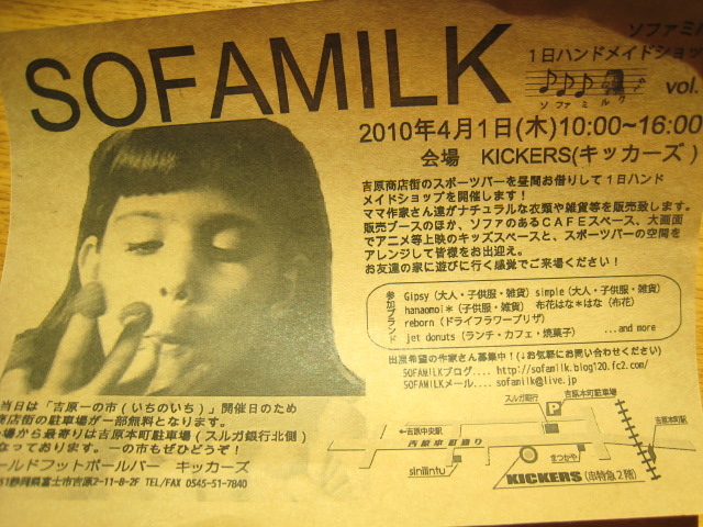 遅れましたが、4月1日sofamilk&cafe 1day shop、。
