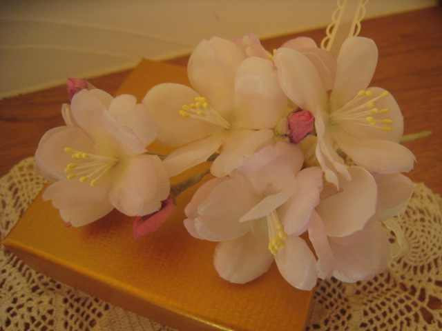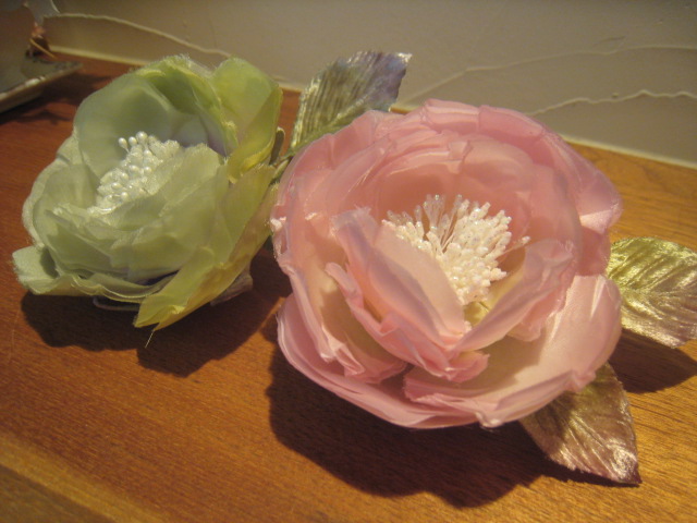 3000円は正絹の生地を使っています。桜・すみれのコサージュもお勧めです♪