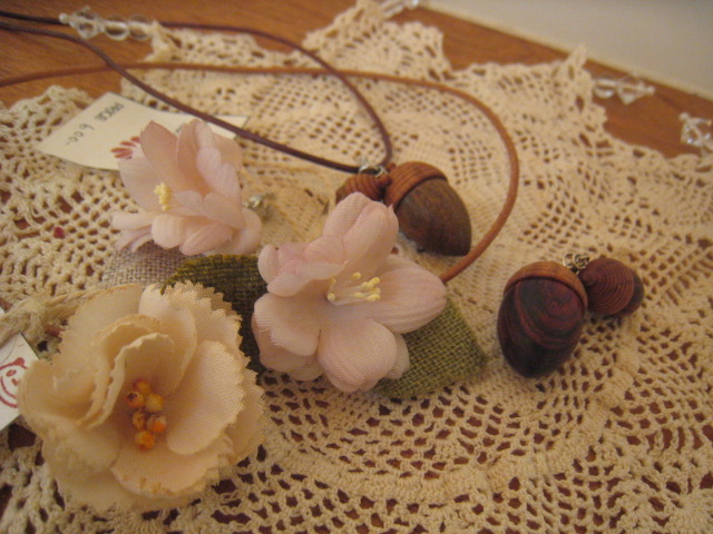 どんぐり・小花のペンダントトップも作ってみました。